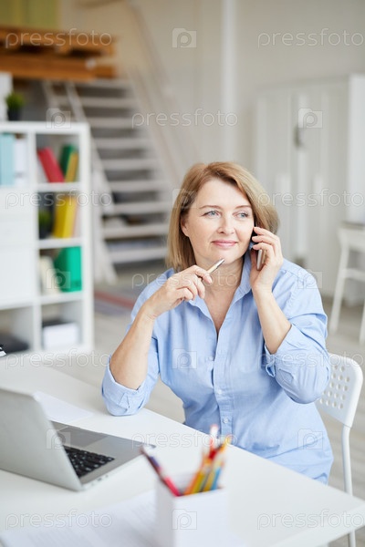 Зрелая деловая женщина, разговаривающая по телефону