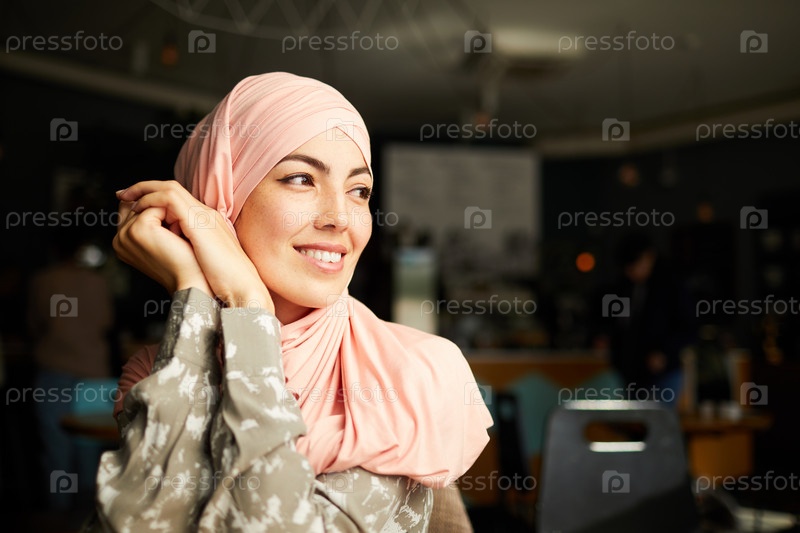 Вдумчивая мусульманка отдыхает в кафе