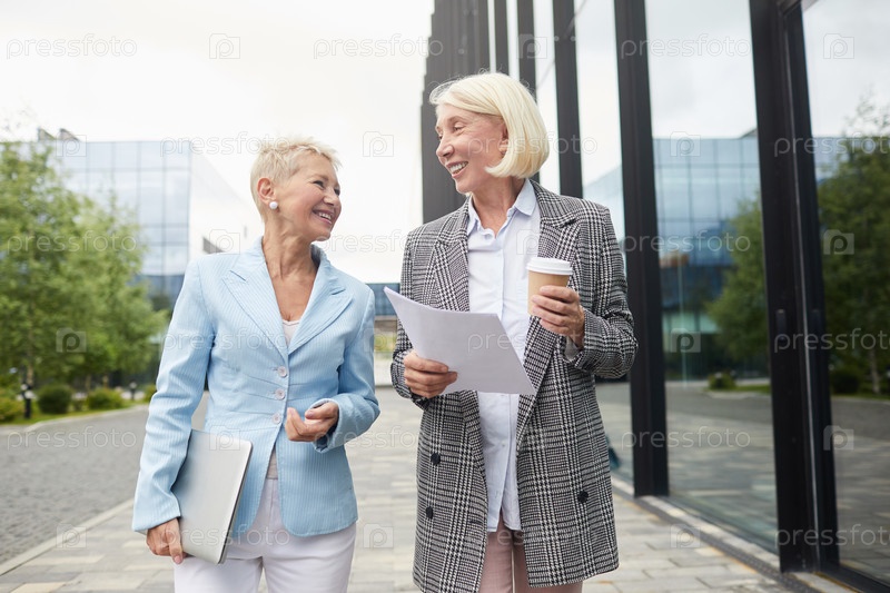 Две зрелые деловые женщины в городе