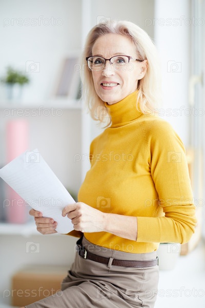 Зрелая деловая женщина улыбается перед камерой
