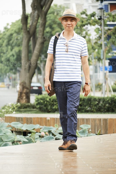 Азиатский старший мужчина, гуляющий на улице