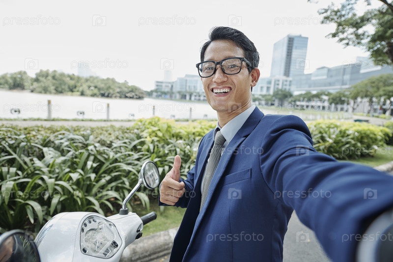 Веселый бизнесмен показывает палец вверх