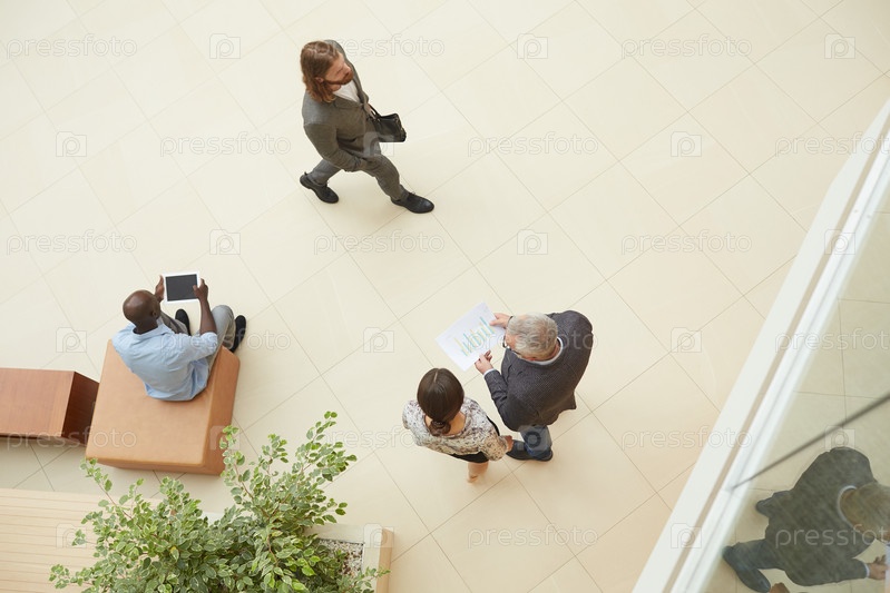 Группа людей, встречающихся в бизнес-лобби Top View