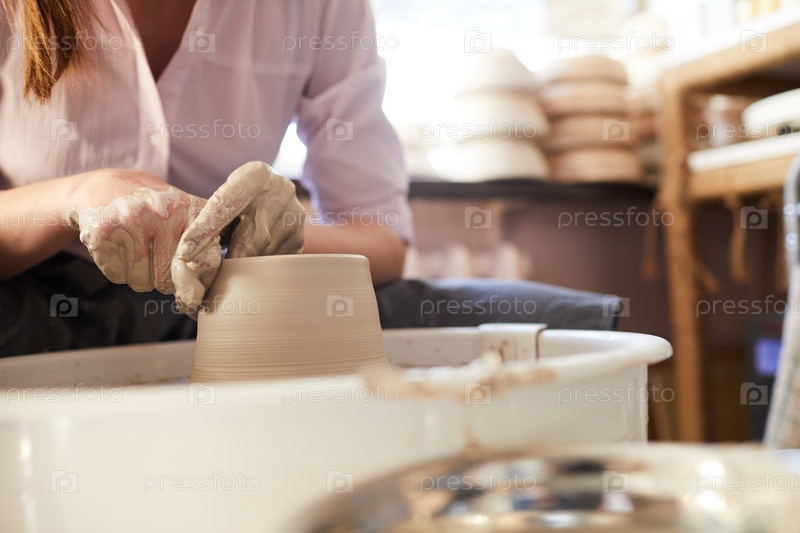 Женщина, использующая Potters Wheel Closeup Woman