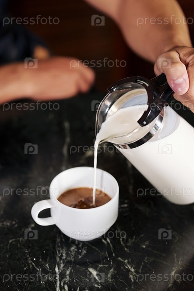 Мужчина делает кофе с молоком