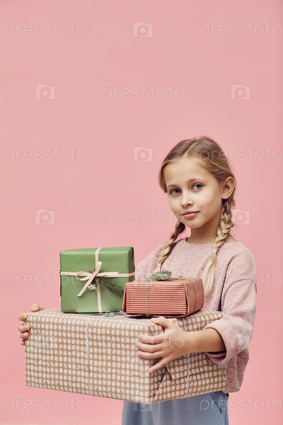 Маленькая девочка с коробками для подарков