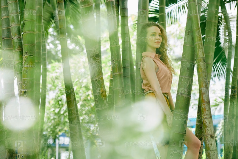 Красивая женщина в бамбуковом лесу