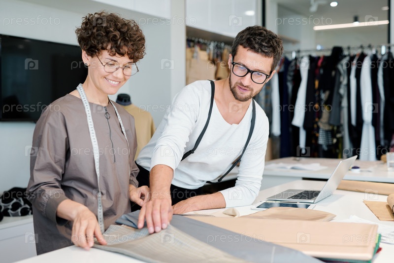 Две молодые модные дизайнеры выбирают текстиль для новой сезонной коллекции
