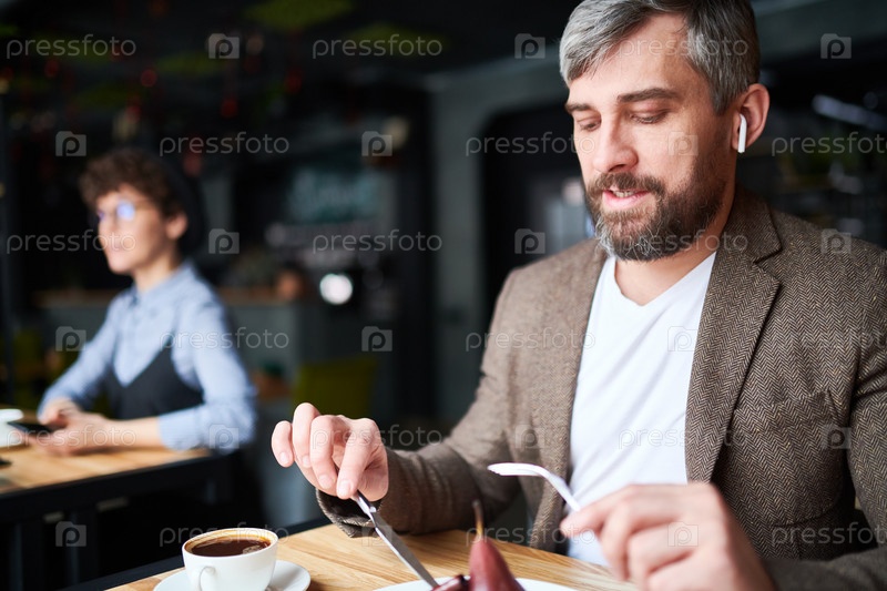 Мужчина ест десерт