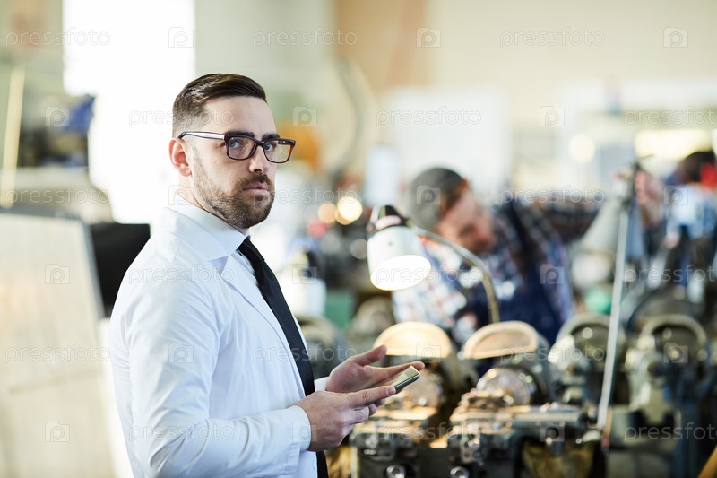 Фабричный менеджер, держащий планшет