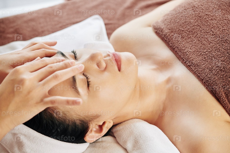 Косметолог массажирует лоб