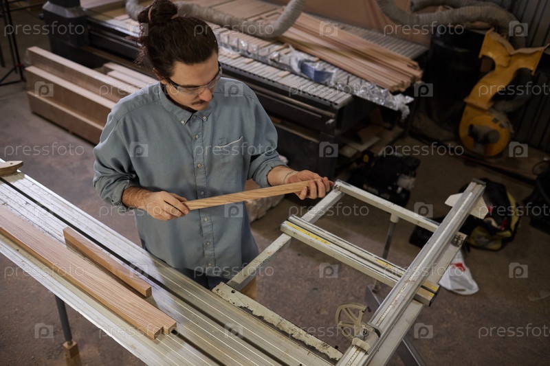 Плотник, режущий деревянную доску