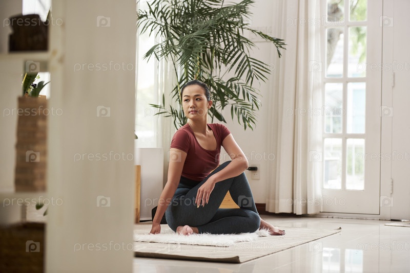 Женщина занимается спортом дома