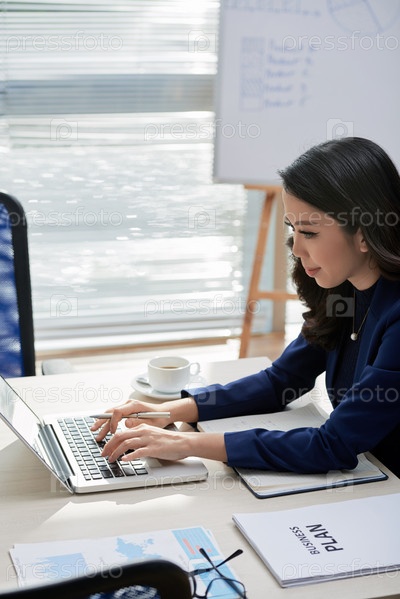 Деловая женщина, работающая на ноутбуке