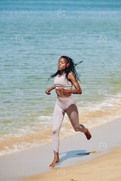 Спортсменка, бегущая на пляже