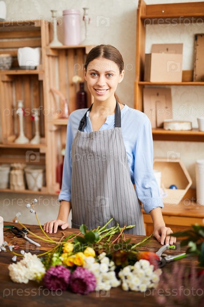 Улыбающийся цветочник в цветочном магазине