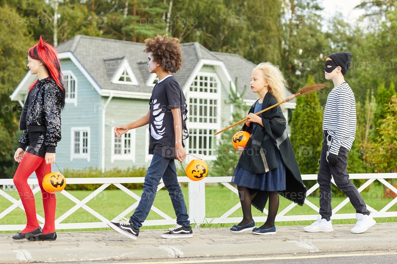 Дети в ряду на Хэллоуин