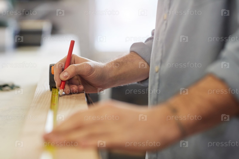 Человек измеряет деревянные детали