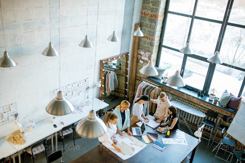 Группа молодых современных креативных дизайнеров, работающих над новой коллекцией