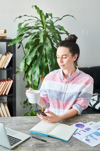 Женщина, использующая смартфон на рабочем месте