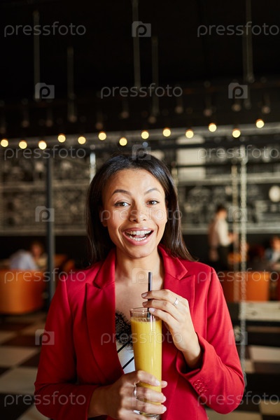 Взволнованная леди пьет алкогольный коктейль