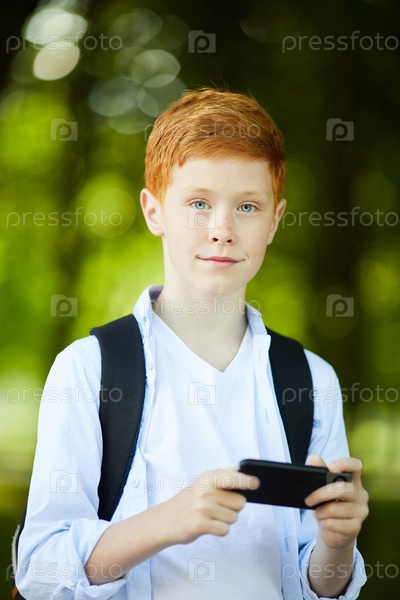 Школьник позирует для фотографии