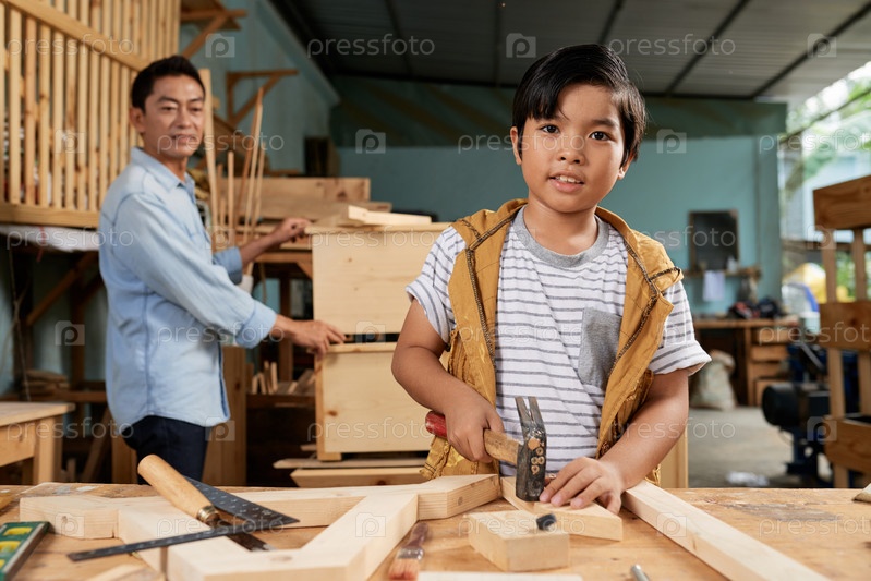 Мальчик посещает урок плотничества