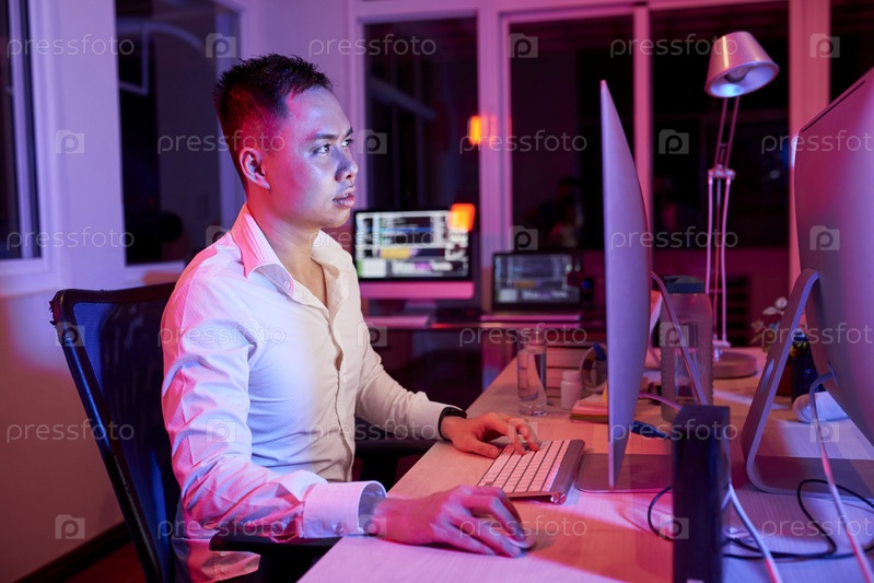 Молодой бизнесмен, работающий на компьютере
