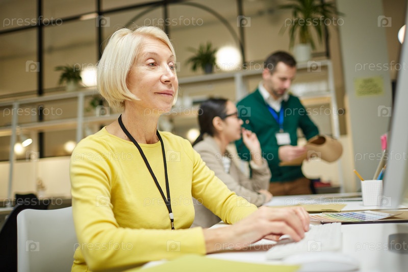 Контент-леди печатает на клавиатуре компьютера в офисе