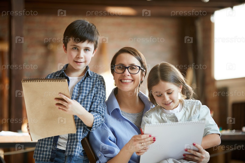 Мать позирует с двумя детьми