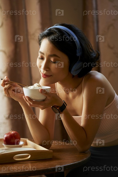 Молодая женщина наслаждается едой