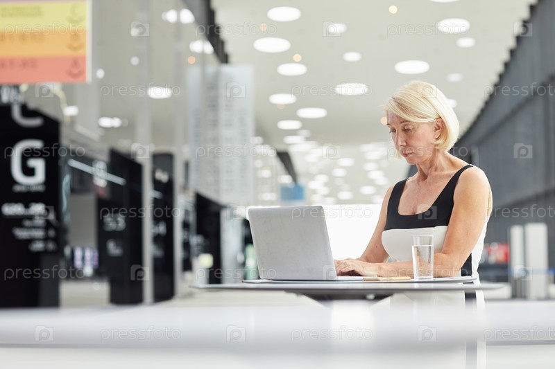 Деловая женщина с ноутбуком в бизнес-холле