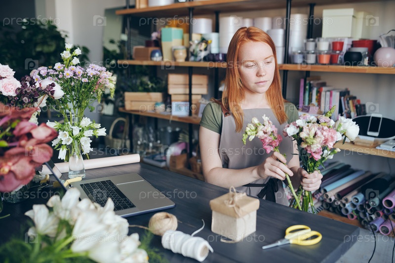 Молодая женщина создает красивые цветочные аранжировки
