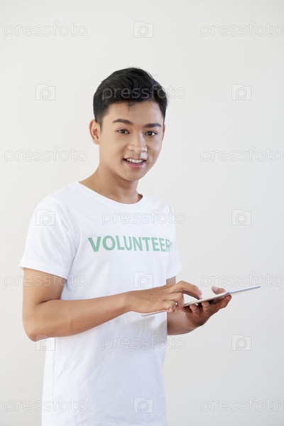 Молодой человек, использующий планшетный компьютер