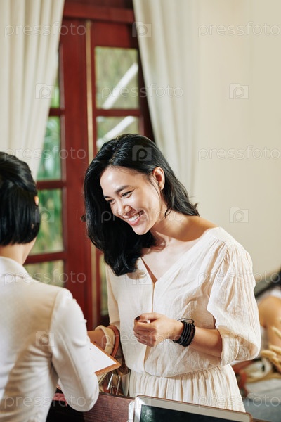 Позитивная женщина, принимающая анкету