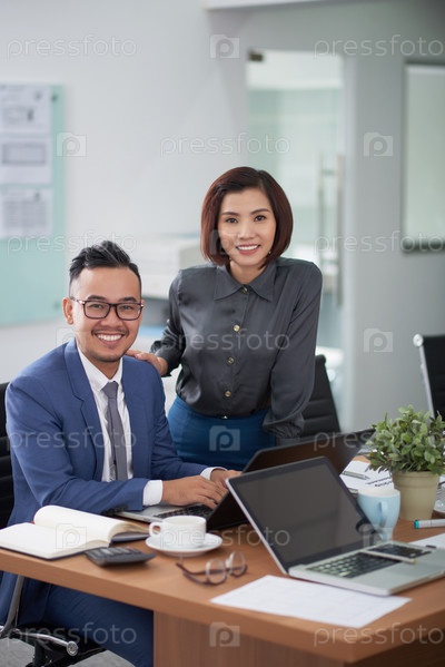 Бизнес-партнеры, работающие в команде в офисе