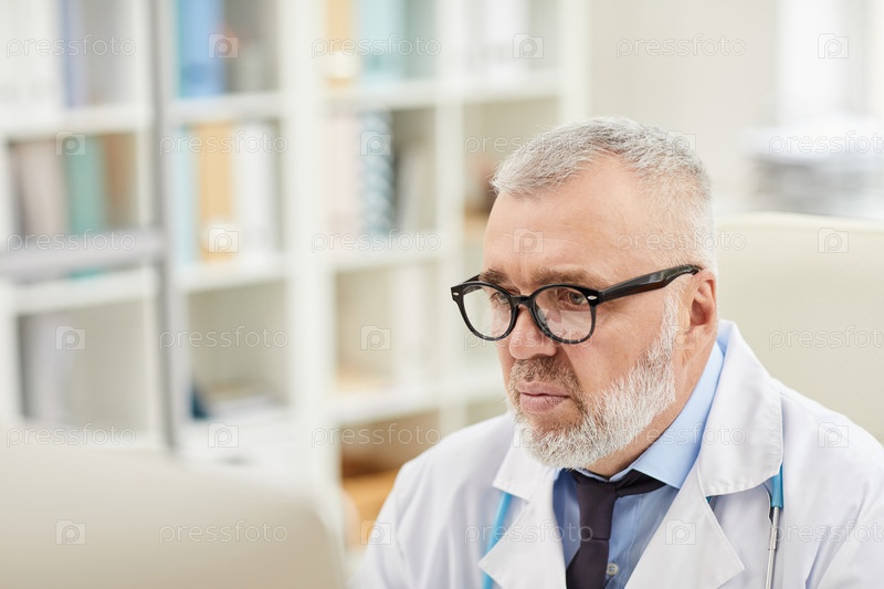 Зрелый врач, работающий в офисе