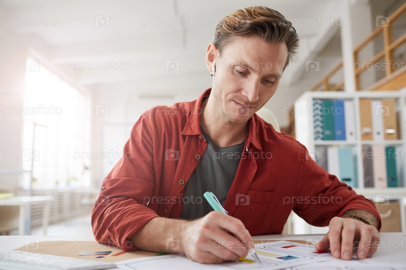 Дизайнер рисует эскизы мужчина