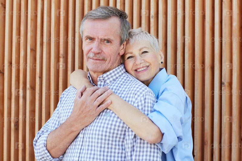 Современная старшая пара позирует на открытом воздухе