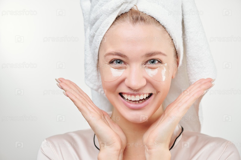 Молодая красивая женщина с пятнами под глазами смотрит на тебя со зубчатой улыбкой
