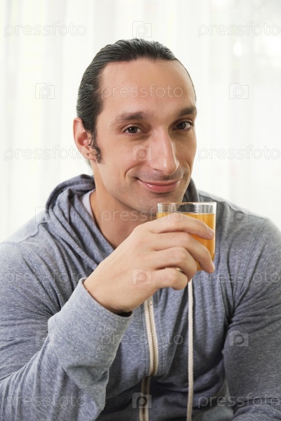 Мужчина пьет сок