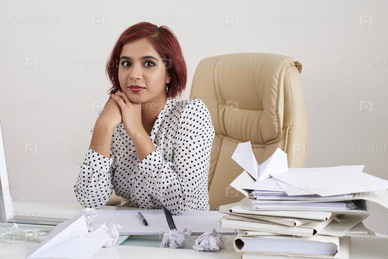 Молодая секретарша на своем рабочем месте