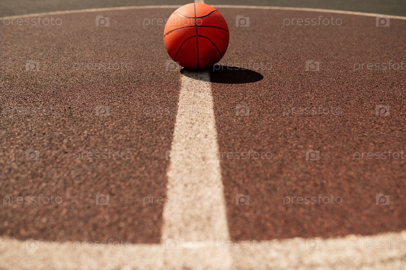 Мяч для баскетбола, лежащий в центре вертикальной белой линии