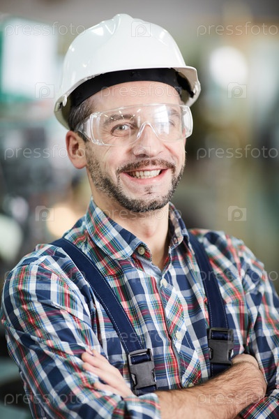 Зрелый фабричный рабочий улыбается