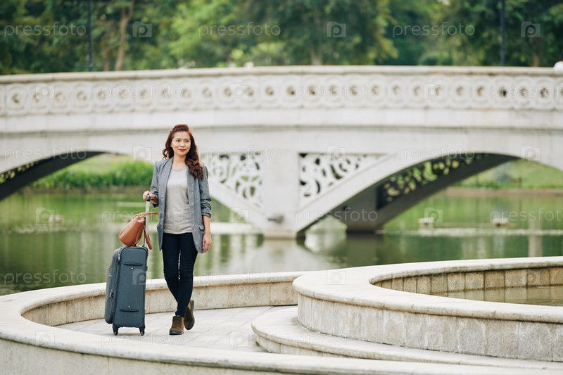 Женщина-туристка, гуляющая в парке