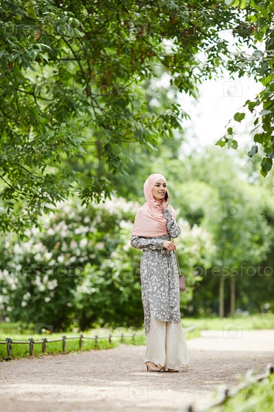 Мусульманка, гуляющая в парке