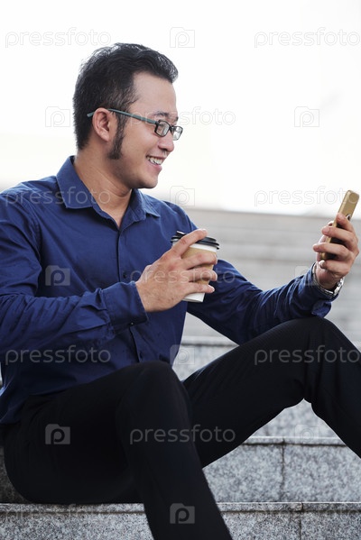 Бизнесмен со смартфоном и чашечкой кофе
