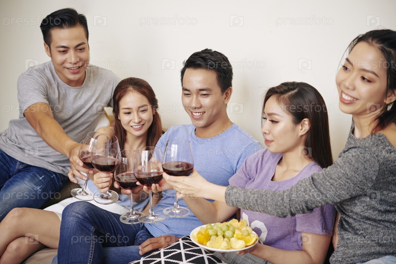 Друзья пьют вино на вечеринке