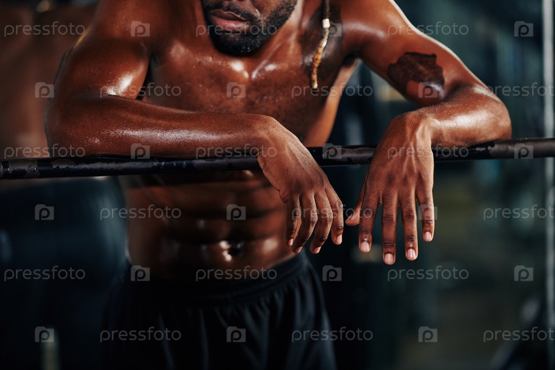Потный мужчина, опирающийся на перила