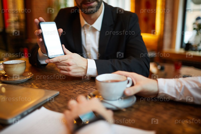 Бизнесмен представляет смартфон